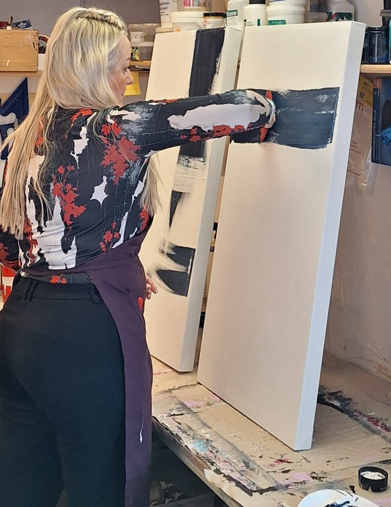 Wir arbeiten in meinem Atelier in Wörgl – hell, ruhig und mit genügend Platz zum Malen.